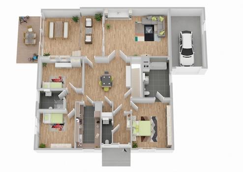 Der Bungalow verfügt über drei komfortable Schlafzimmer, darunter ein geräumiges Elternschlafzimmer mit eigenem Ensuite-Badezimmer. Dieses Bad wurde mit besonders hochwertigen Armaturen und stilvollen Accessoires ausgestattet und bietet ein herausragendes Ambiente.