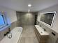 - Tageslichtbad mit halbfreistehender Badewanne, bodentiefer Dusche und WC,