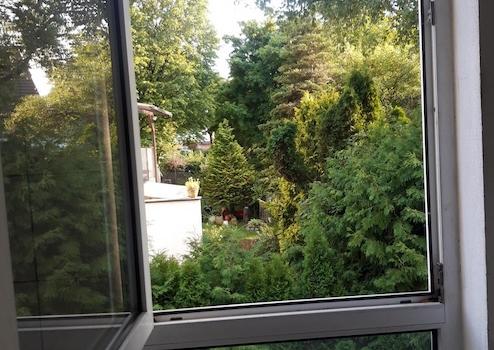 Spaziergänger und Jogger haben den Waldeingang nur ein paar Schritte entfernt. Der Friedrich-Panzer-Weg führt direkt in den Wald (Naturschutzgebiet). Wenn Sie das Satellitenbild anklicken, können Sie auf dem Foto sehen, wie nah das Waldgebiet ist.
