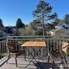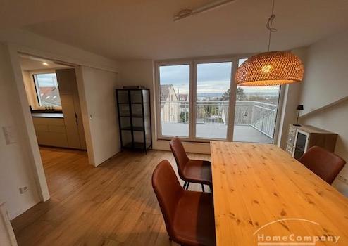 Neu möblierte Dachgeschoßwohnung mit Blick ins Grüne. Wohnen: großer Wohnbereich, mit Zugang zur Terrasse. Küche: separate Einbauküche mit allen Geräten und Spülmaschine Essbereich: im Wohnzimmer mit 4 Plätzen ...