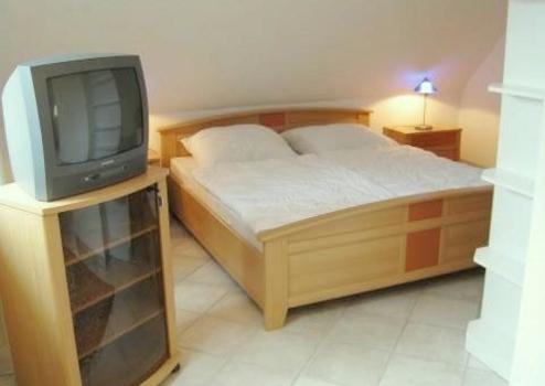 Wohn/Schlafzimmer mit Bett 2 m, Schrank, Sofa, Couchtisch, Kabel-TV, Esstisch.