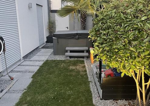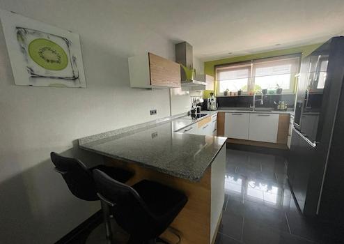 4,5 Zimmer, 1 Badezimmer mit Badewanne und Dusche, Gäste-WC, Terrasse, Garten, Garage (10m) und 3 Stellplätze. Fußbodenheizung im EG und Badezimmer mit zusätzlichem Handtuchheizkörper, weiße Innentüren, Gasheizung und Solar für Warmwasser, Photovoltaikanlage mit Speicher, Alarmanlage, 3-fach verglaste Kunststofffenster weiß mit abschließbaren Fenstergriffen, Fenster teils mit Fliegengitter, elektrisch betriebene Rollläden mit separater Funk-Fernbedienung, Klimaanlage in allen Schlafräumen, Einbauküche von Plana mit Granitarbeitsplatte und Einbaugeräten der Marke Siemens, Abstellraum mit Einbauschränken vom Schreiner angefertigt, Videosprechanlage im EG/OG, Überdachte Terrasse mit integriertem Sonnenschutz und Beleuchtung, Garten komplett eingezäunt mit Bewässerungsanlage, Beleuchtung am Zaun und im Boden, sowie Strahler mit Bewegungsmelder, Außenkamera und Zugang über ein seitliches Gartentor. Pool mit Wärmepumpe, Jacuzzi, Gartendusche mit Warmwasseranschluss.