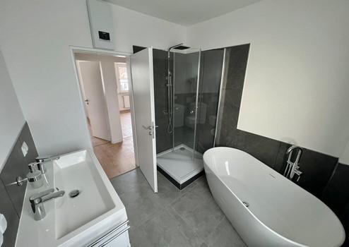 Vollbad, Duschbad, Laminat, Fliesen