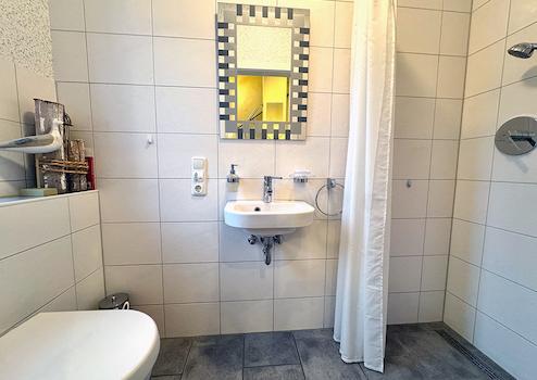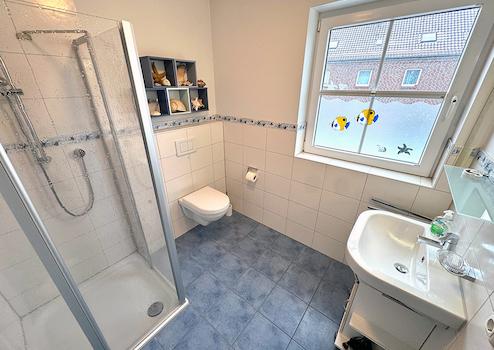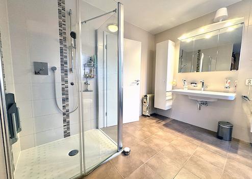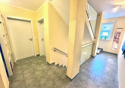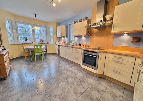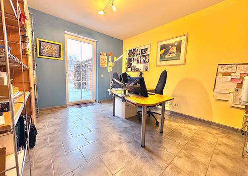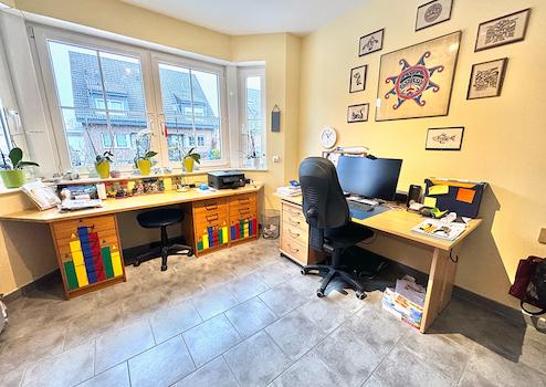 Erdgeschoss: Wohn- und Esszimmer (mit Terrassenzugang), Büro I, Büro II, Küche (inkl. Einbauküche nebst Elektrogeräten und angrenzendem Vorratsraum), Diele / Garderobe, Gäste-WC (mit ebenerdiger Dusche), Hausanschlussraum