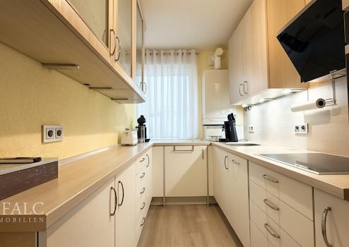 Die Küche ist separat angeordnet und funktional geschnitten. Sie verfügt über gut nutzbare Arbeitsflächen, ausreichend Stauraum sowie Platz für eine vollständige Küchenausstattung. Eine moderne Einbauküche ist bereits vorhanden und im Kaufpreis enthalten, sodass einem sofortigen Einzug ohne weiteren Investitionsbedarf nichts im Wege steht.