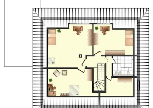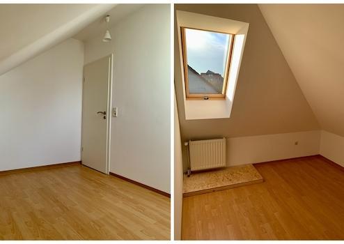 Im vollständig ausgebauten Dachgeschoss befinden sich zwei grössere Schlafzimmer sowie ein weiteres, kleineres Schlafzimmer. Ein zusätzliches WC und ein praktischer Dachbodenraum bieten weiteren Komfort und Stauraum.