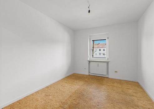 Weiter den Flur entlang befinden sich zwei weitere Schlafzimmer, die flexibel als Kinder-, Gäste- oder Arbeitszimmer genutzt werden können. Eines dieser Zimmer verfügt über einen Zugang zum Ost-Balkon, der für viel Tageslicht sorgt und eine angenehme Atmosphäre verschafft. Am Ende des Flurs liegt das große Badezimmer mit WC, Waschbecken, Badewanne, Duschkopf sowie Spiegelschrank mit Unterschrank.