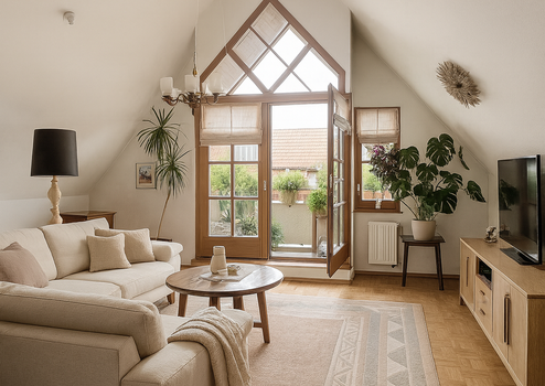 Hoch oben unter dem Dach entsteht ein Wohngefühl, das Ruhe, Licht und Geborgenheit vereint. Diese gepflegte 4-Zimmer-Wohnung bietet einer kleinen Familie oder einem Paar mit erhöhtem Platzbedarf einen angenehmen Rückzugsort mit klarer Raumstruktur und zwei sonnigen Balkonen.