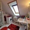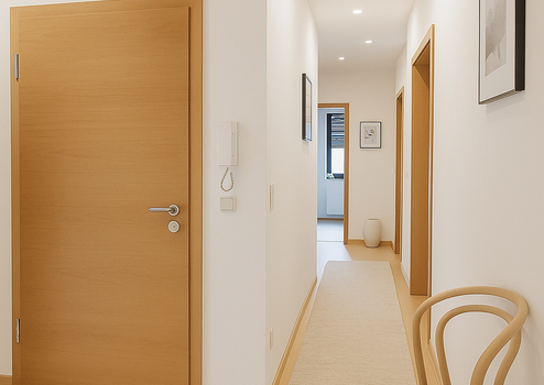 Die Einbauküche ist funktional gestaltet und eignet sich hervorragend für alle, die gerne kochen. Das zusätzliche Gäste-WC mit Dusche sorgt für Flexibilität im Alltag. Die zwei Balkone öffnen die Wohnung zur Sonne und schaffen Orte für kleine Pausen, gemeinsames Frühstück oder ruhige Abendstunden.