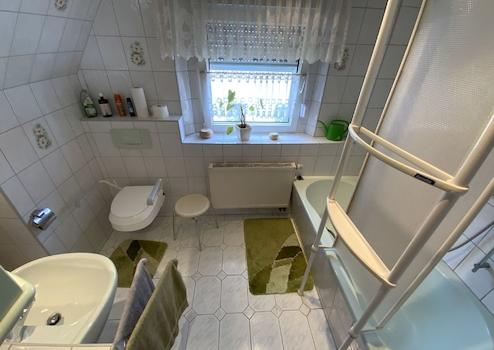 Weiterhin sind im Erdgeschoss, von der Küche ausgehend sowohl ein Bad mit Dusche und ein Abstellraum, als auch ein Wohnzimmer erreichbar. Ein weiteres Zimmer ist direkt vom Flur begehbar.