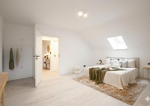 • Türen: Im Wohnzimmer eine stilvolle Glas-Tür, die für ein modernes Loft-Gefühl sorgen und Licht in die Räume bringen. Die anderen Räumlichkeiten mit weißen Zimmertüren welche mit schönen Designkanten versehen sind