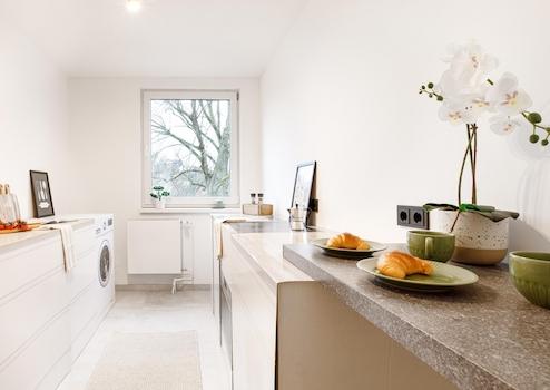 • Kernsanierung: Die Wohnung wurde umfassend kernsaniert und entspricht dem Standard eines Neubaus.