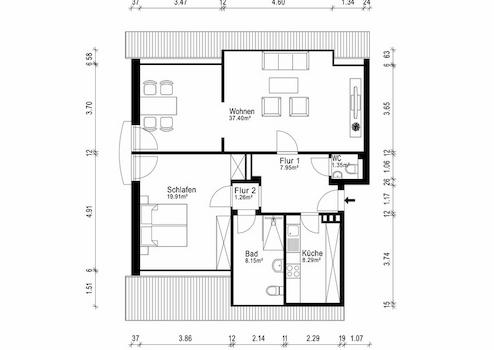 Die ca. 84,9 m² Wohnfläche bestechen durch ein modernes Designkonzept. Die Wohnfläche sind funktional aufgeteilt in ein Schlafzimmer, ein großes Wohnzimmer und ein drittes Zimmer. Dieses ist als offenes Durchgangszimmer konzipiert (kein direkter Zugang vom Flur), was es ideal als Home-Office, Lese- oder Gästezimmer macht und den gesamten Wohnbereich eine großzügige Weite verleiht. Die Wohnung ist versehen mit einem hellen, durchgängigen Parkettboden schafft eine warme Atmosphäre, während das sanierte Bad mit großformatigen 60x120 Fliesen und hochwertigen Armaturen einen Wellness-Charakter bietet. Auch technisch ist die Wohnung auf dem neuesten Stand (neuer E-Check).