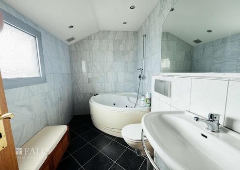 Ein modernisiertes Tageslichtbad mit Dusche und einer Badewanne inklusive Massagedüsen sorgt für zeitgemäßen Komfort und Entspannung.