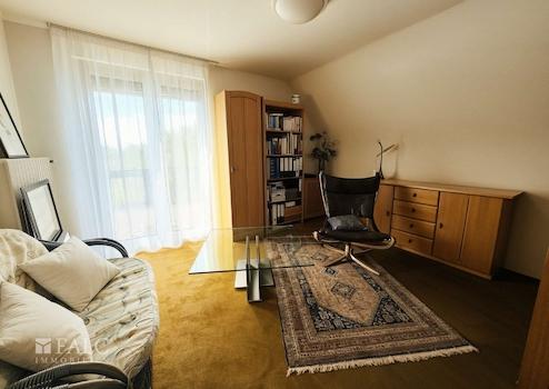 Sowohl das Schlafzimmer als auch das Gästezimmer bestechen durch bodentiefe Fenster, die die Räume mit Licht fluten. Während das Hauptschlafzimmer einen wunderbaren Weitblick ins Grüne eröffnet, bietet das zweite Zimmer mit Einbauschrank – welches sich ideal auch als Kinderzimmer nutzen lässt – einen direkten Zugang zum großzügigen Balkon, der zum Sonnenbaden einlädt.