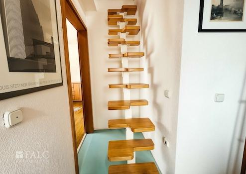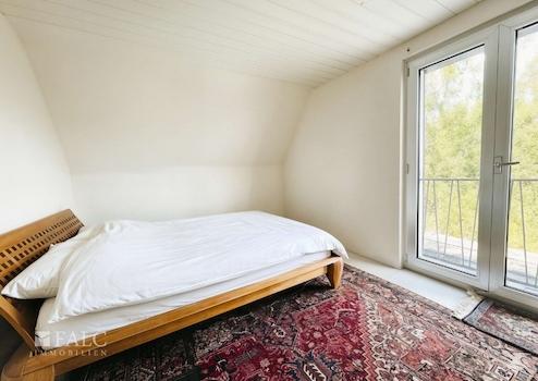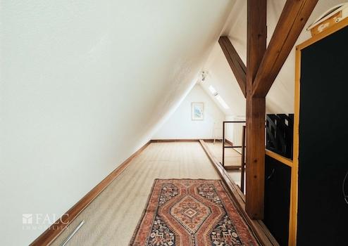 Über die Holztreppe erreichen Sie schließlich das ausgebaute Dachgeschoss: Der beheizte Spitzboden (ca. 28 m²) wird offiziell als Nutzfläche geführt, bietet jedoch durch seinen wohnlichen Ausbau die ideale Qualität für ein ruhiges Home-Office, ein Atelier oder einen zusätzlichen Schlafbereich.