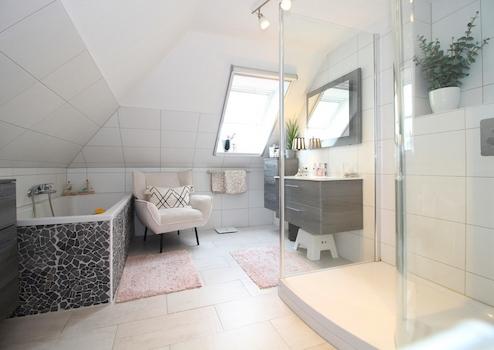 Dachgeschoss: Galerie, Flur, Tageslichtbad mit bodengleicher Dusche und Badewanne, Schlafzimmer mit Ankleidebereich, 2 weitere Zimmer, 1 Raum;