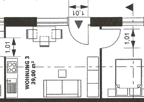 Die 2-Zimmer-Wohnung befindet sich im Erdgeschoss eines Mehrfamilienhauses mit 5 Wohneinheiten - gelegen nach vorne zum Kremper Weg. Sie verfügt über ein Wohnzimmer, ein Schlafzimmer sowie ein Badezimmer mit Dusche/WC.