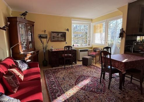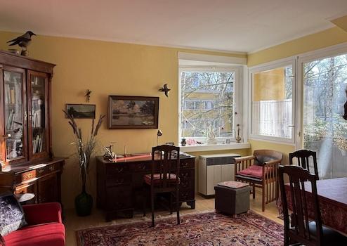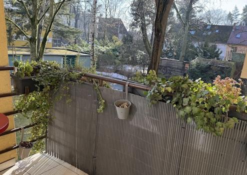Die bezugsfreie, moderne 1,5 Zimmer-Wohnung befindet sich im 1. OG in ruhiger und grüner Toplage auf dem Fichtenberg ( mit Universitätsnähe zur FU, an der Grenze zu Dahlem und dem Botanischen Garten ).Die zweigeschossige Wohnanlage wurde um 1953 erbaut und in den 90er Jahren modern umgebaut. Die Wohnung hat einen guten Wohnungsschnitt mit rund 40 qm, verfügt über einen großen Wohnraum und einen separaten Schlafzimmerbereich ( mit großem Einbauschrank ). Durch Glaswände und Glastüren als Abgrenzung zwischen Küche und Schlafraum wirken die Raumverhältnisse räumlich funktionell und großzügig. Eine Besonderheit ist, dass es nicht nur einen gefliesten Balkon mit schönem Blick ins Grüne gibt, sondern sie auch den Garten am Haus zu Ihrer Erholung nutzen können. Ihnen steht außerdem ein Kellerraum zur Verfügung. Alle Räume ( Küche, Bad, Wohnzimmer, Schlafzimmer ) sind geschmackvoll und vollständig möbliert. Alle Fenster sind mit Insektenschutzgittern ausgestattet. Der Energieausweis der Immobilie liegt vor. Das monatliche Hausgeld beträgt 168 €.