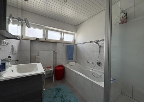 - Das Bad oben verfügt über eine Badewanne und eine getrennte Dusche. Das Bad unten hat eine barrierefreie, großzügige Dusche. Eine zusätzlich elektrische Fußbodenheizung in den Bädern sorgt bei Bedarf für behagliche Wärme an den Füßen
