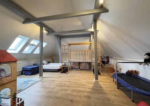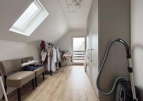 Im Obergeschoss erwarten Sie zwei weitere Schlafzimmer, eine Abstellkammer sowie ein weiteres Badezimmer auf ca. 40m² Wohnfläche. Zusätzlich steht hier ein großzügiger Raum mit ca. 36m² wohnähnlich nutzbarer Fläche zur Verfügung, der vielfältige Nutzungsmöglichkeiten bietet - beispielsweise als Büro, Schlaf- oder Kinderzimmer.