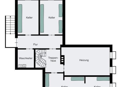 Der Vollkeller bietet weitere Nutzfläche in Höhe von ca. 121m². Hier befindet sich unter anderem die Gaszentralheizung aus dem Jahr 2023. Die Kellerräume eignen sich hervorragend als zusätzlicher Stauraum oder für weitere Nutzungsmöglichkeiten.