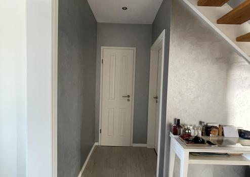 Auch der Flur im Erdgeschoss erhielt diese exklusive Wandgestaltung.