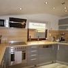 Die moderne Einbauküche ist stilvoll gestaltet und bietet ausreichend Platz zum Kochen.