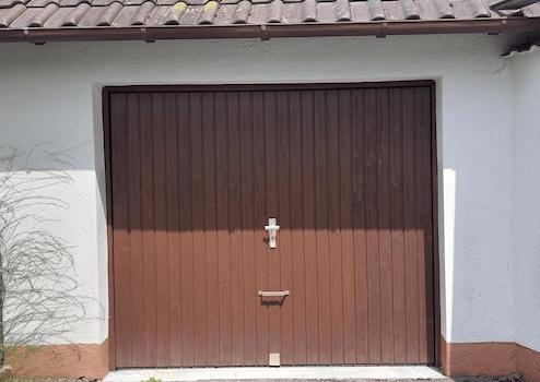 Eine Garage mit extra Fahrradschuppen und zusätzlichem Abstellraum.