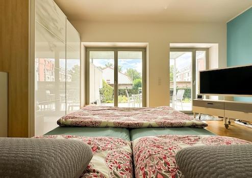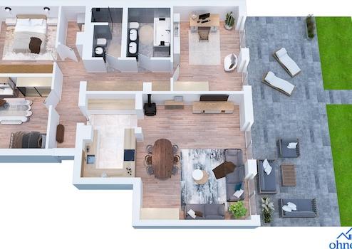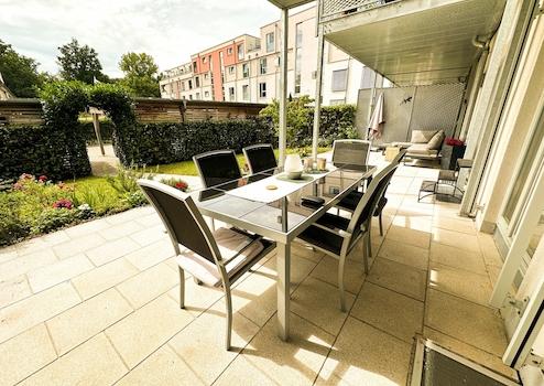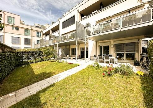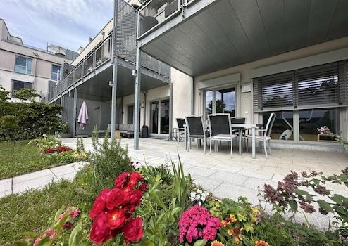 Exklusive EG-Wohnung mit Hauscharakter: 46 m² überdachte Terrasse, Garten, A+ Energie, 2 Carports
