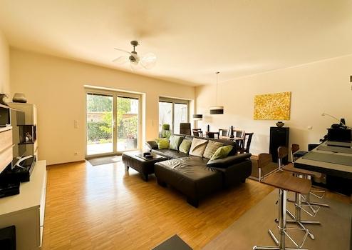 🌳 Über großzügige, bodentiefe Tür- und Fensterelemente gelangen Sie direkt auf die 46 m² große, überwiegend überdachte Südterrasse und in den angrenzenden 69 m² großen privaten Garten – ein seltenes Zusammenspiel aus Privatsphäre, Komfort und Lebensqualität. Die Wohnung bietet damit ein Wohngefühl, das deutlich über eine klassische Erdgeschosswohnung hinausgeht.