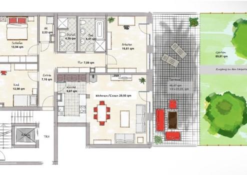 Der Kaufpreis versteht sich inklusive der Einbauküche sowie der zwei fest zugeordneten Carports mit Stromanschluss und Beleuchtung.