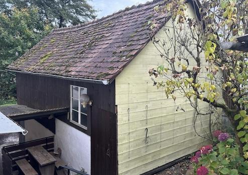Dieses gemütliche Einfamilienhaus stammt in seinem Ursprung aus dem Baujahr 1933 und wurde 1963 mit einem Anbau erweitert. 1983 schließlich wurde durch den Einbau einer Dachgaube die Nutzung des Dachgeschosses nochmals deutlich verbessert. Das Haus bietet ca. 135 m² Wfl. im Erd- und Obergeschoss sowie ein Zimmer im Dachgeschoss. Im EG befindet sich der Hauseingang mit Windfang, Küche, Ess- und Wohnzimmer im vorderen Bereich sowie einem Bad, ein kleines Büro und ein Vorraum im hinteren Bereich des Hauses. Im Obergeschoss befinden sich insgesamt 4 Zimmer, ein WC und eine Dusche. Von einem der hinteren Zimmer, das zudem über einen Zugang zu einer kleinen Terrasse verfügt, führt ein Treppe zu einem weiteren Zimmer im Dachgeschoss, das als Gast-/Hobbyzimmer genutzt werden kann. Weitere Nutzfläche steht Ihnen im Kellergeschoss und in einem Nebengebäude zur Verfügung. Dort haben Sie reichlich Platz für Werkstatt und Hobby. Hinter dem Haus liegt ein schönes Gartengrundstück, ideal für die Kinder zum Spielen oder für Ihren eigenen Gemüsegarten. Für Ihren PKW gibt es einen, allerdings sehr schmalen, dafür aber überdachten Stellplatz zwischen Haus und Nebengebäude.