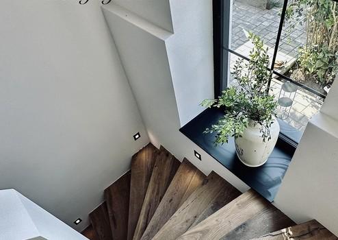 Massivholztreppe mit Parket aus Stahlbeton mit