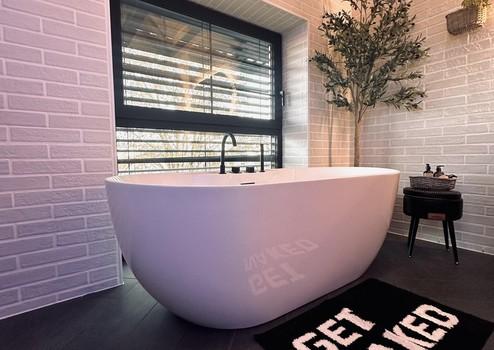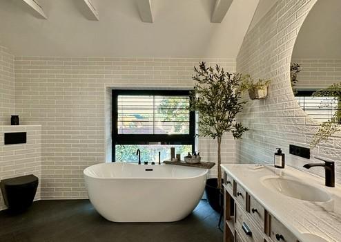 +Spa-Bad – freistehende Wanne + große Walk-in-Dusche