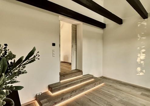 +Im gesamten Haus erwarten Sie Eichen-Massivparkett, Naturstein , sichtbare +Deckenbalken sowie ein stimmiges