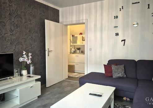 Hier bieten wir Ihnen eine gepflegte, attraktive 2-Zimmer zum Selbstbezug oder als Kapitalanlage an. Die Wohnung liegt im 1. Obergeschoss und umfasst ca. 48 qm. Ursprünglich wurde sie 1952 als 2-Zimmer-Wohnung in einem vierteiligen Mehrfamilienhaus (je Eingang sechs Parteien) erbaut. 2006 erfolgte eine umfangreiche Sanierung und ein Balkon hinzufügte. Die Wohnung verfügt über ein Schlafzimmer, ein Wohnzimmer, ein Flur, eine Küche mit einem Essbereich und ein 2016 erneuertes Bad. Zusätzlich gehören ein Keller und ein Speicherraum dazu. Die Wohnung kann zum Selbstbezug oder als Kapitalanlage erworben werden.