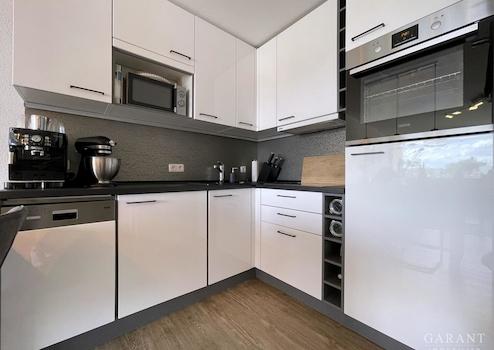 * eine neue Einbauküche mit elektrischen Großgeräten