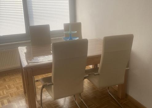*gemütliche Wohnzimmer: Das stillvolle Wohnzimmer ist mit einem eleganten Rolf Benz Echtleder, Sofa, einen professionellen elektrischen höhenverstellbaren Schreibtisch (ideal für Homeoffice), und einem massiven Holztisch der auf 2,17 m ausziehbar ist (Patentierten Butterfly Auszug, rollengelagert in 4 sec. ausgezogen), extrem bequeme Venjakob Swingerstühle, ein geräumiges Sidebord, einen schwenkbaren 43 Zoll Fernseher mit 4 K und allen Annehmlichkeiten.