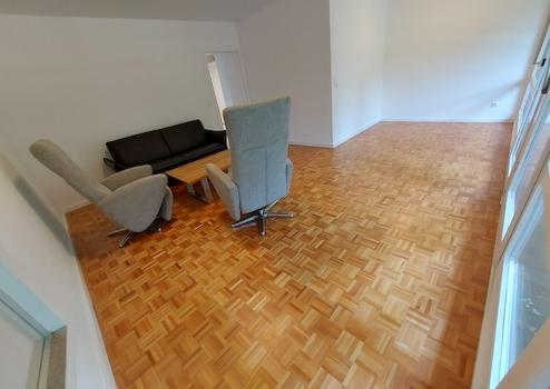 Schlafzimmer, Kinderzimmer, Wohnzimmer + Essecke mit Parkett.