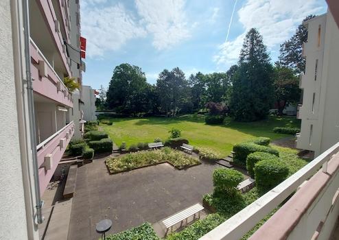 Genießen Sie die Morgensonne aus dem Schlafzimmer oder auf dem hinteren Balkon mit Blick auf die hauseigene grüne Parkanlage.