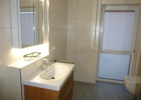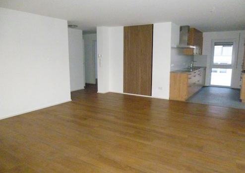 Vinylboden im Wohn-und Essbereich / Fließen im Bad/WC