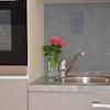 Die Wohnung hat ein modernes Bad, weiß gefliest mit Dusche und Fenster. Eine neuwertige Einbauküche mit 2 Herdplatten sowie Mikrowelle etc. ist vorhanden.
