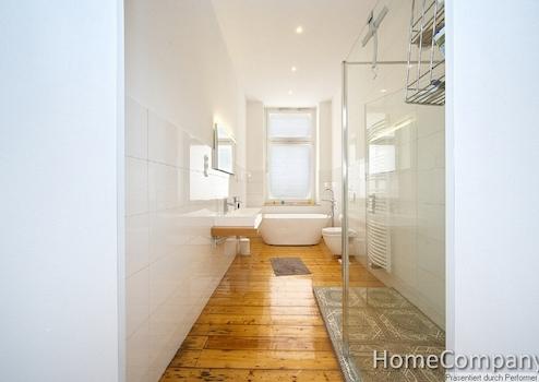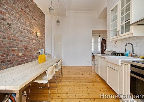 Diese lichtdurchflutete Wohnung bietet Ihnen viel Raum für eine entspannte Zeit nach Ihrem Job. Der Wohnbereich bietet Ihnen ein sehr gemütliches Sofa (als Schlafsofa nutzbar) mit Smart-TV, ein Boxsack animiert zu täglichen Exercises. Vom Wohnbereich gelangen Sie in die offene Wohnküche mit kompletter Einbauküche inklusive Spülmaschine, Backofen, Cerankochzone und freistehender Kühlgefrierkombination. Eine Grundausstattung an Geschirr und Kochutensilien ist natürlich auch vorhanden. Von der Küche gelangt man auf den rückwärtigen Balkon. In einer Abstellkammer ist die Waschmaschine installiert. Das Schlafzimmer bietet Ihnen ein gemütliches Doppelbett, ein weiteres Smart-TV ist dort installiert. Das, vom Schlafzimmer abgehende, Masterbad en Suite hat eine freistehende Wanne und eine große, ebenerdige Duschkabine. Die Kabine ist mit hochwertigen Mosaikfliesen ausgelegt, der original Dielenboden gibt dem Bad ein ganz besonderes Flair. Das dritte Zimmer bietet in den umlaufenden Kleiderschränken und Kommoden viel Stauraum, kann aber auch in Absprache zum Gästezimmer umfunktioniert werden, Platz für ein Einzelbett ist vorhanden. Das Gästebad ist mit einem geschmackvollen Mosaikboden und einer ebenerdigen Dusche ausgestattet. Bei Bedarf kann ein Tiefgaragenstellplatz organisiert werden, Kosten je nach Verfügbarkeit.