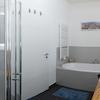 • Im eleganten Bad gibt es sowohl Dusche als auch Badewanne und einen kombinierten Waschtrockner.