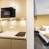 Die Apartments in unserem Apart Arthotel sind für einen längeren Aufenthalt gemacht und bieten ausreichend Platz. Hier finden Sie alles, was auch zu einem guten Zuhause gehört: eine kleine Küche mit Kochfeld, Mikrowelle und Kühlschrank, ein Bad mit Dusche und WC, einen Schreibtisch für schnelle Erledigungen und eine gemütliche Sofaecke mit TV zum Ein- und Abschalten. Mit schnellem WLAN im ganzen Haus können Sie wie gewohnt surfen, streamen oder arbeiten. Weil gute Qualität bei uns oberste Priorität hat, haben wir sämtliche Betten und Matratzen vom Schlafstudio, dem Freisinger Betten-Fachhändler, ausstatten lassen. Die Balkone sind mit einem Sichtschutz für Ihre Privatsphäre versehen. Auch die Außenanlage unseres Hauses lädt zum Durchatmen ein: Die große Sonnenterrasse ist für alle Gäste da. Hier finden Sie Ruhe und Entspannung in privater Atmosphäre.