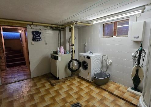Der Keller teilt sich in vier Räume auf und hat einen separaten Zugang über die Garage. Im Waschraum befindet sich ein Waschbecken und ein Podest für die Waschmaschine, dass ein bequemes Be- und Entladen der Waschmaschine ermöglicht. Weitere Räume können als Werkstatt oder Vorratsraum eingerichtet und genutzt werden. Die Gasheizung aus 1986 befindet sich ebenfalls im Keller.
