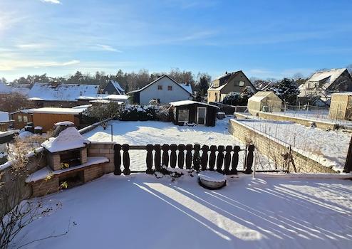 Auf zwei Etagen verteilt, bietet das voll unterkellerte Haus ca. 98 m² Wohnfläche, außerdem verfügt das Gebäude über eine angebaute Garage und einen Fahrradraum.