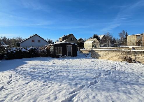 Der Fahrradraum hinter der Garage kann zu einer Werkstatt umfunktioniert werden. Aus dem Keller geht es auf das großzügige Grundstück mit einer weiteren überdachten Terrasse und einem Geräteschuppen.
