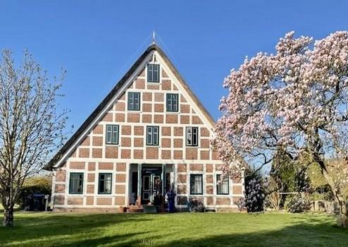 Eingebettet ins Alte Land, malerisch entlang des Elbufers und inmitten Europas größtem zusammenhängenden Obstbaugebiet liegend, beherbergt das kernsanierte Denkmalgebäude mit imposanten Reetdach insgesamt fünf Wohneinheiten.